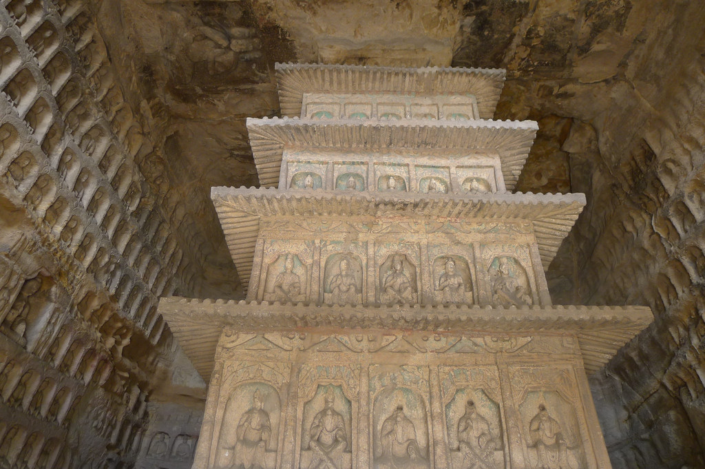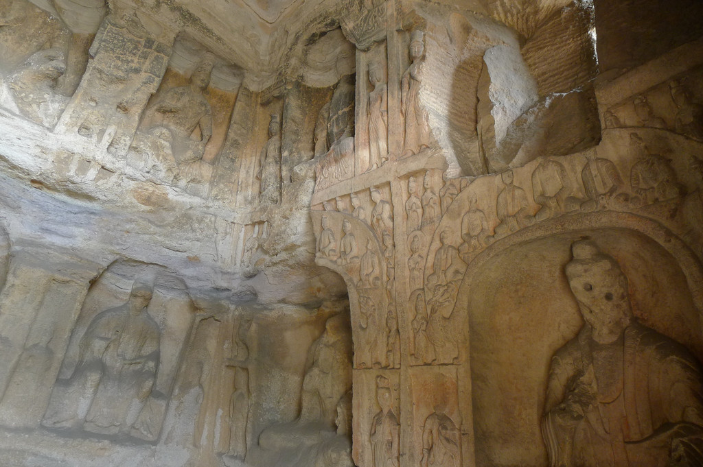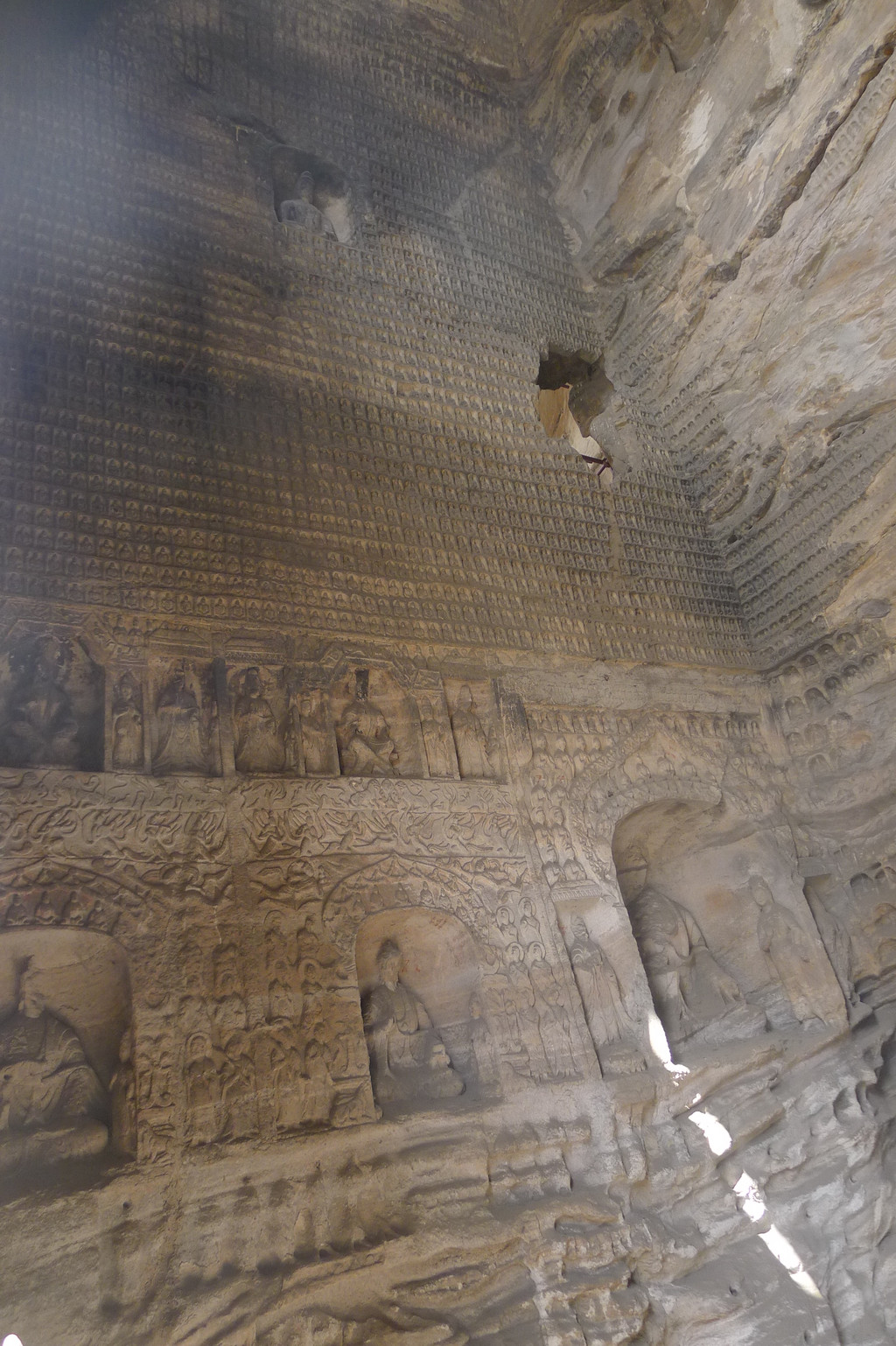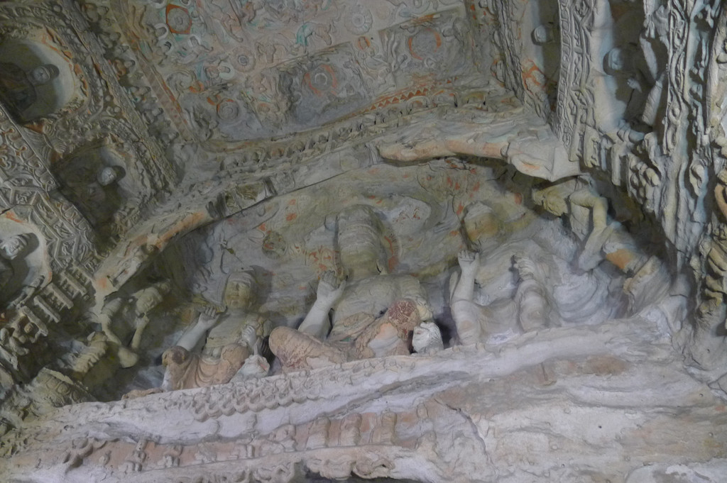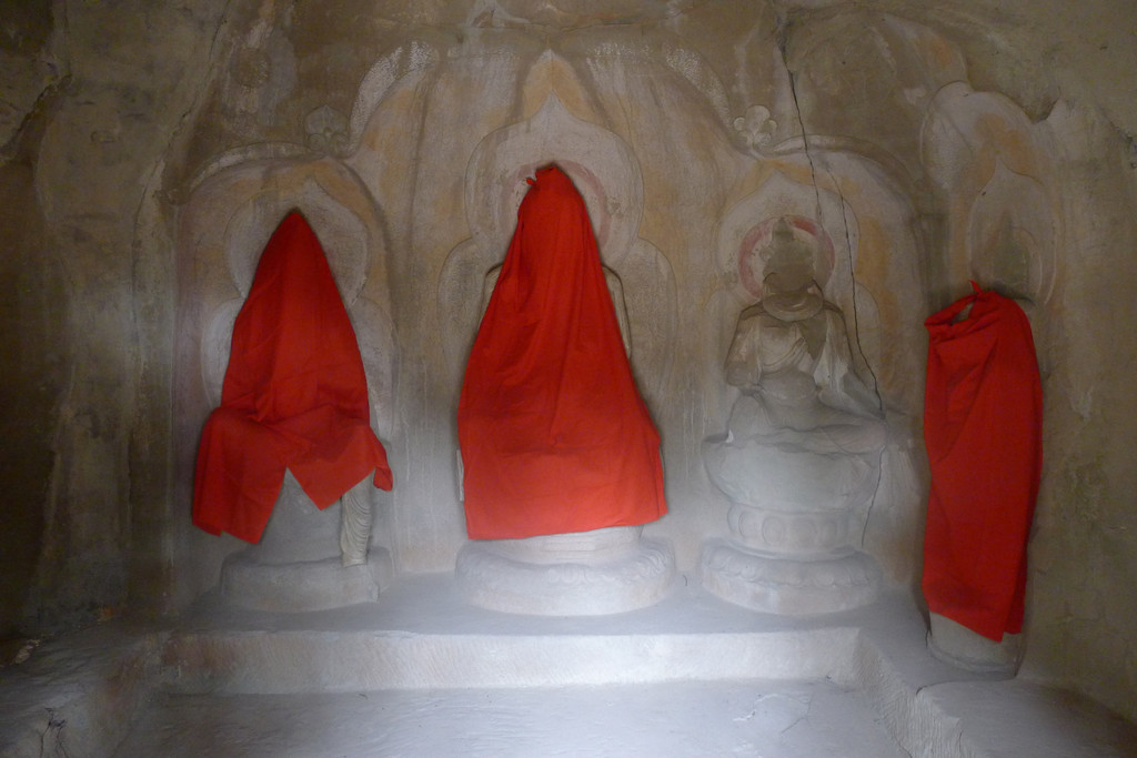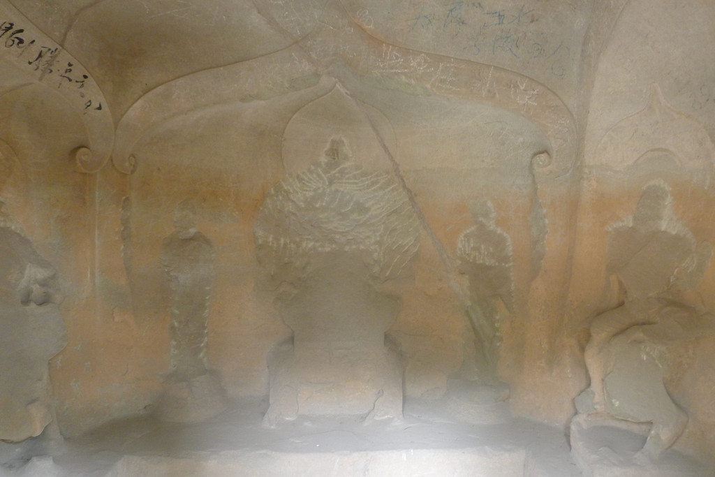 与其他石窟景区不同,天龙山石窟内少有完整、无损无缺的石像,原因在于近代战乱时天龙山石窟遭受了较为严重盗凿,很多佛像仅剩佛身;加之经千年风雨侵蚀,石像风化十分严重,不少石像轮廓、表面已模糊看不到细节,甚至辨认不出原本模样(比如我把一石窟的石狮看成了石猴)。天龙山东西峰石窟间的漫山阁(第九窟)及其里面的雕像,虽是现代重建,却相当震撼。佛像雕塑既伟岸高雅,又圆润多姿,特别是11面观音之精致让人难忘。