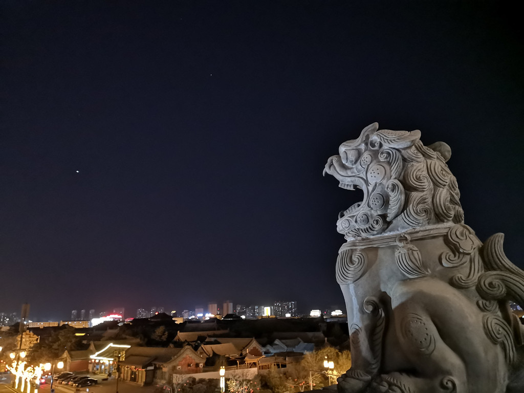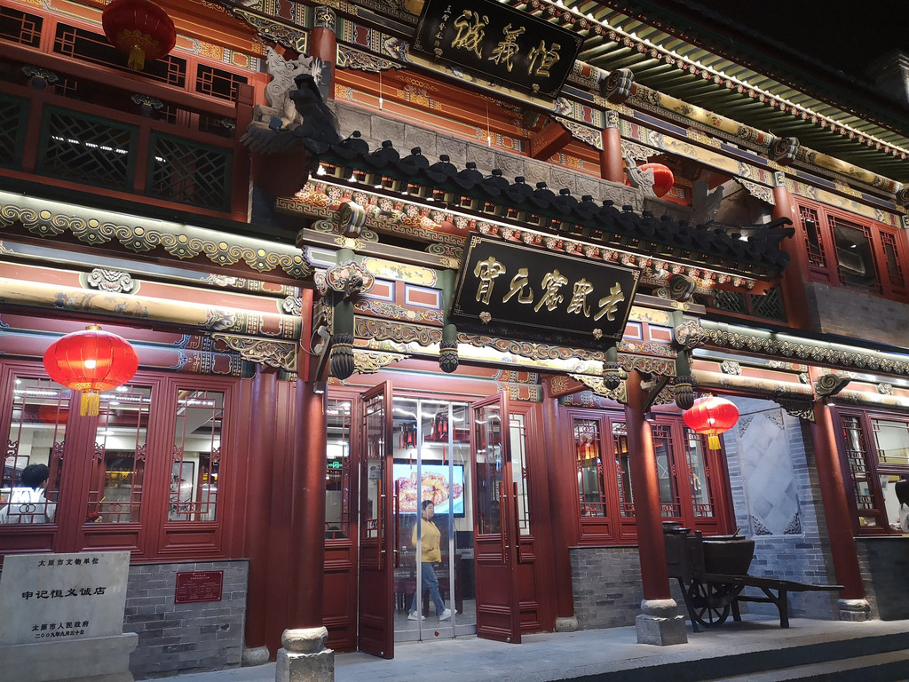 我们逛完晋祠后回程路上去的古县城,到达时已是傍晚。大概因为淡季、非周末且晚上,当时游客不多、部分商家已打烊,城内不算热闹。我们简单找了一家当地连锁餐饮店老太原解决晚餐后便离开了,没有在古县城内逗留和游逛太久。必须要提的,太原古县城是今年贺岁档电影《满江红》的取景地,古县城沿袭了晋阳古城“城池凤翔余”的古老建筑格局,古城墙、县衙、关公庙、城隍庙、魁星楼等建筑也都“修旧如旧”,非常适合穿着汉服“穿越”一番。