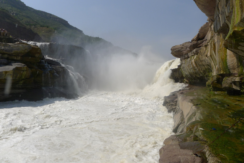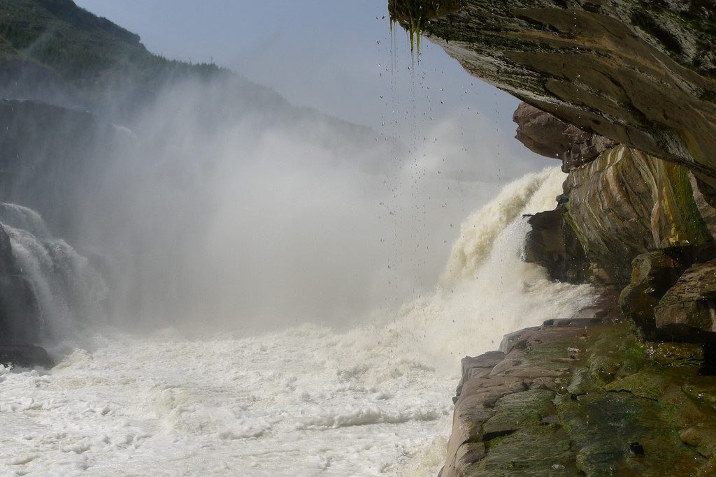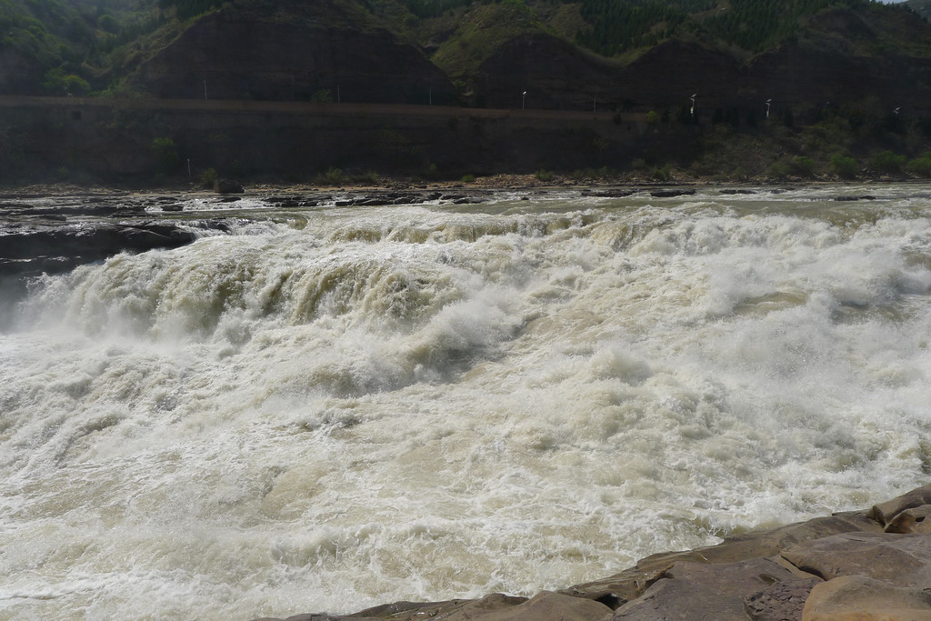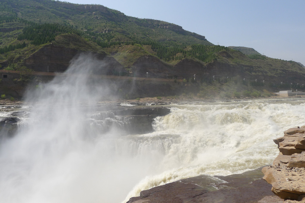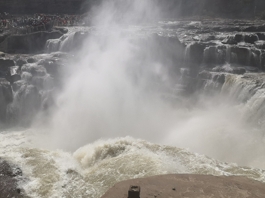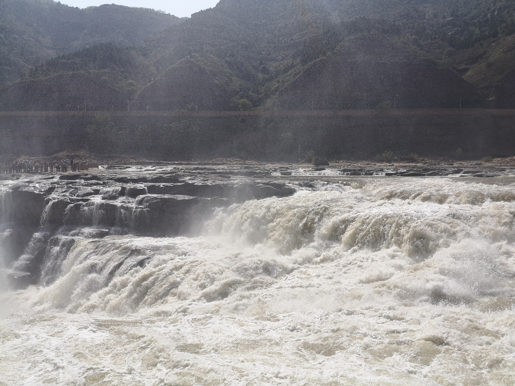 4月的壶口瀑布,没有3月桃花汛时水量那么大,但其气势也足以称为汹涌澎湃。此时水量适中,可以下到龙洞去仰视瀑布,近距离感受黄河的气势。