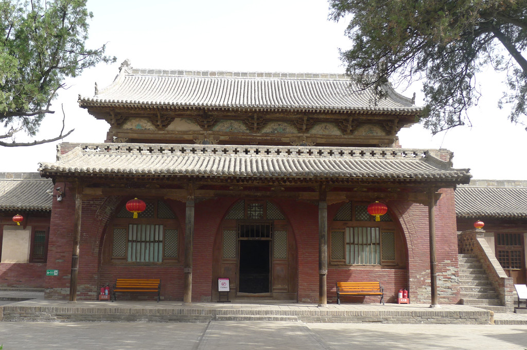 镇国寺,位于山西省平遥县城东北15千米的郝洞村,是目前国内稀有的五代时期建筑。镇国寺的万佛殿,经历代多次重修仍保持五代时的风貌,是寺中最古老的建筑,亦是中国佛教寺院中现存的三处五代建筑之一,殿内彩塑更是全国寺庙殿宇中保存至今的唯一五代作品。寺内三佛楼中保存着明代时期绘制的释迦故事壁画,技巧古朴娴熟。从我们外行人看,镇国寺必然没有双林寺绚丽夺目,但它的唯一性使它具有相当重要的艺术价值和研究价值。