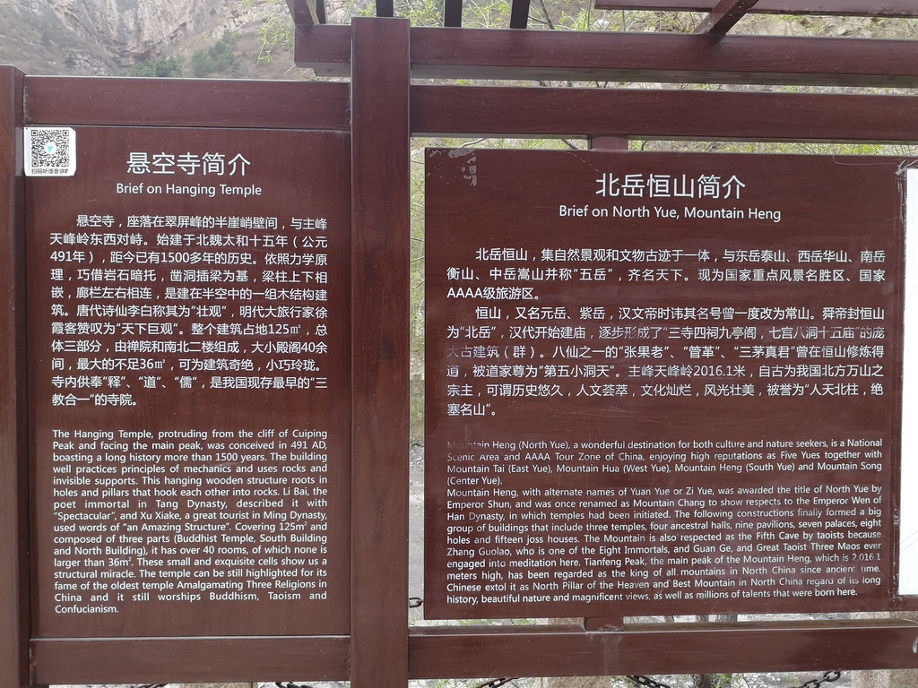 恒山和悬空寺虽同为恒山风景区,却是两个不同游览入口。其间相距4公里左右,可坐景区专线。建议先爬恒山,再去悬空寺。