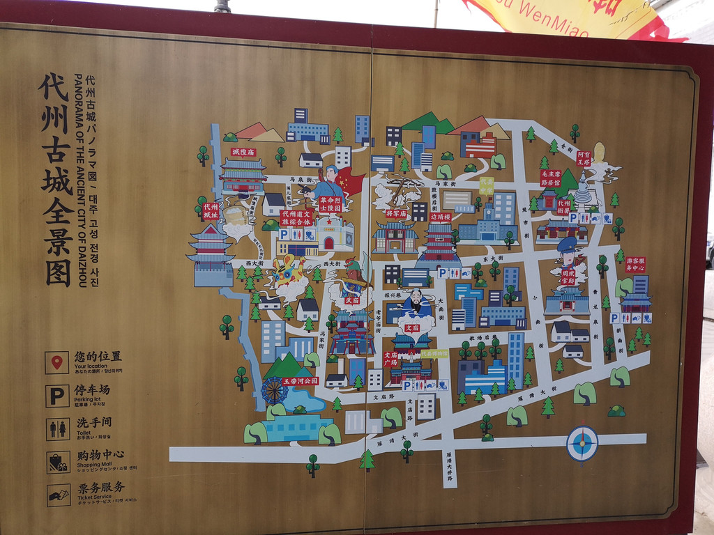 代县,位于山西省东北部,隶属于忻州市,是国家历史文化名城。古时或因雁门关塞,代县是中国古代北境著名的边塞重地和军事重镇。而现在当地仍保存有代县古城的基本样貌(现在称为代州古城景区),古城设东西南北四门,建筑学家梁思成曾评价代州古城的规划十分精彩。古城内现存边靖楼、代州文庙、阿育王塔等三处全国重点文物保护单位和钟楼、毛主席路居纪念馆等两处省级重点文物保护单位。在代县县城转,这座不大的县城建筑低矮、街道规整,能感受到其浓重的历史气息。