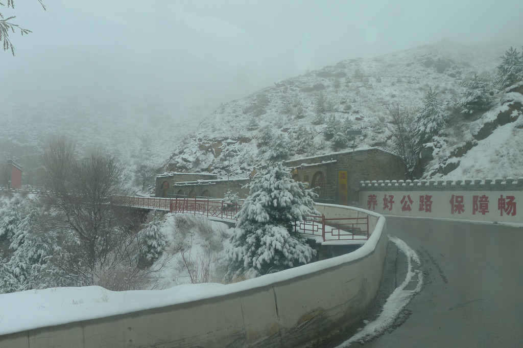 (我们离开五台山那天,因下雪封路错过了前往大同的火车,便在砂河镇汽车站坐大巴车前往大同,票价:40元/人。自此也提醒一下:五台山天气多变,下雪霜冻时进出五台山的路可能会封闭,出行时多留意当地天气。)