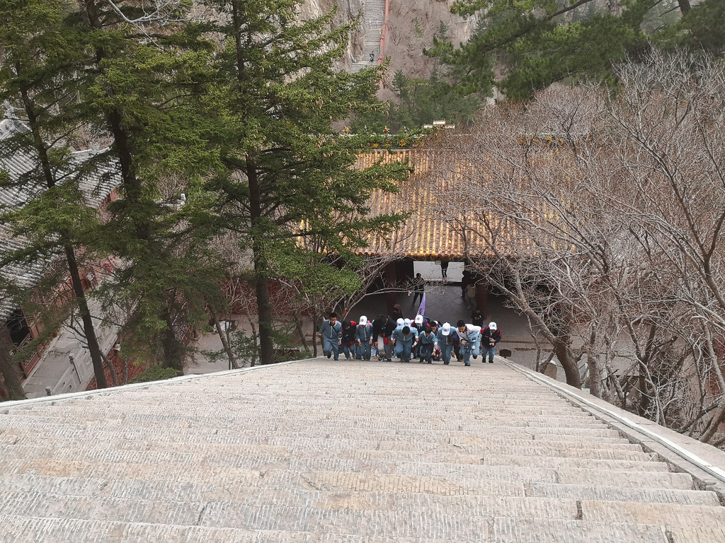 可能4月恒山的植被还没有完全从冬季的寒冷中苏醒,放眼还是黄黄的土色一片。