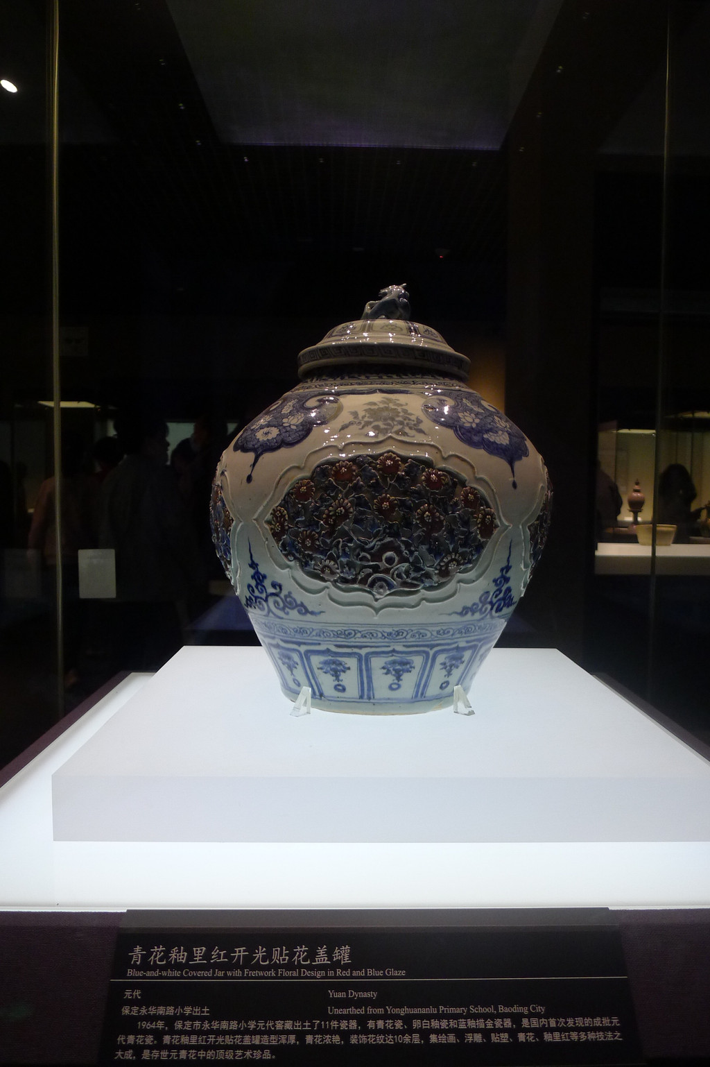 河北博物院是回程中转时捡漏的。关注博物馆的朋友,对河北博物院自然不会陌生,有名的长信宫灯、错金博山炉、金缕玉衣便是它家的镇馆之宝。河北博物院藏品量和精品度都值得到石家庄的人去看看,名气不大的藏品中也会有让人意想不到的品质,比如青花釉里红开光贴花盖罐。