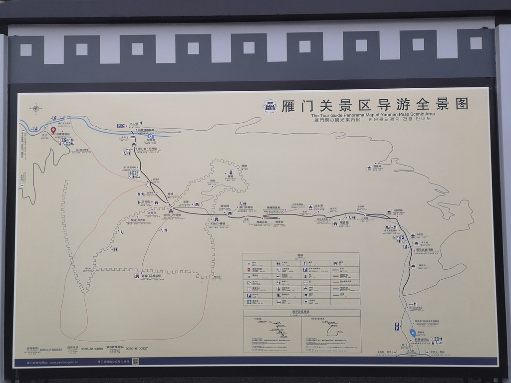 我们从代县客运站出发,乘坐代县到雁门关景区的一票通班次到达雁门关北门。一般情况下,一票通班次落客点在雁门关南门,我们去时由于南门方向道路施工,因此汽车在北门落客。司机介绍,南门离县城更近、路直好走;到北门的山路不好走,但离景区核心景点近,游客能少走路。