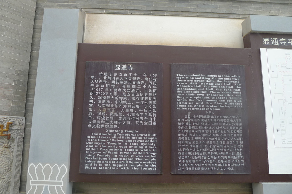 言归正传。五台山——世界文化遗产,中国佛教四大名山之一,是中国唯一一个青庙(汉传佛教)黄庙(藏传佛教)交相辉映的佛教道场。在五台山,如果时间充足体力充沛,可以尝试大朝台路线,也就是顺时针或逆时针朝拜山顶的五个台(东台望海峰、南台锦绣峰、中台翠岩峰、西台挂月峰、北台叶斗峰),走遍山路,朝拜五个台顶的文殊菩萨。我们只有2天时间在五台山,因此选择了另外一个更大众的路线:在五台山中心区游览附近的寺院。最终,我们的足迹经过了黛螺顶、金界寺、五爷庙、塔院寺、菩萨顶、殊像寺、显通寺、大文殊寺、罗睺寺、广仁寺、灵应寺、善财洞。