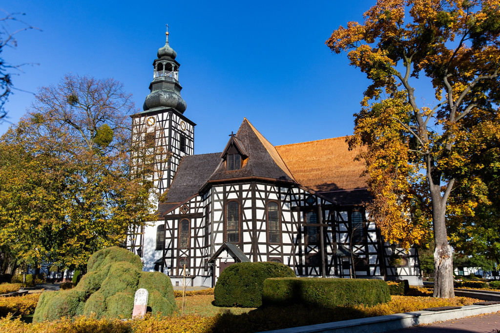 这里保存着下西里西亚仅次于弗罗茨瓦夫的第二大历史建筑群,集中在市集广场以及周边的街道,其中半木结构的和平教堂是当地的重要地标,也是世界遗产之一。