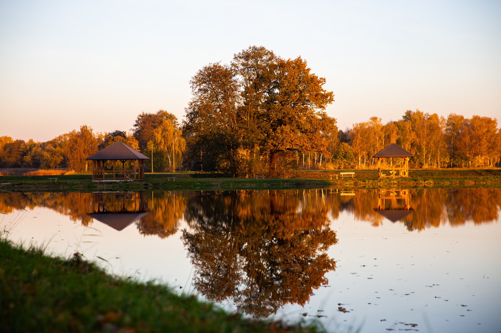 日落或日出时分,在景观公园中沿着湖边的堤坝散步,湖面闪烁的光芒接连岸边片片金黄,秋意醉人,风景如画。游览,河谷,你可以选择居住在附近的米利奇 (Milicz) 小镇。