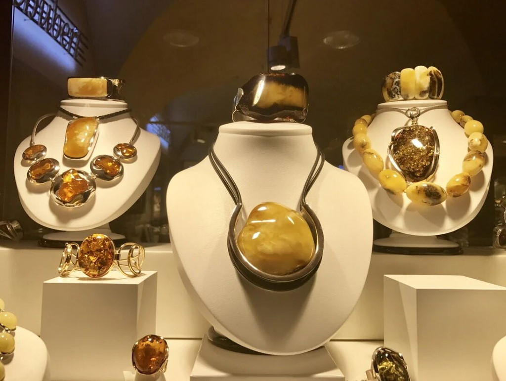 在克拉科夫老城的街道上,琥珀制品—无论是璀璨的珠宝、精致的雕塑还是实用的日常用品——都牢牢吸引着行人的目光。它们诱人地摆放在两旁的商店和画廊中,展示着波罗的海琥珀的自然之美和波兰现代琥珀艺术的独特风采。这些艺术品的创作者,都是波兰顶尖的艺术家和设计师,他们的作品更被珍藏于私人琥珀博物馆(Muzeum Bursztynu)中,供人欣赏。