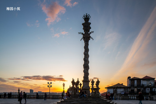 回到广场时已近傍晚,站在广场上俯瞰,阳光撕开云雾,杜罗河瞬间变成一条熔金的缎带。游客们在观景台排成一列,举着手机拍摄对岸的酒窖和路易一世铁桥。从这样的角度才发现,波尔图其实不是彩色的,而是砖红色的,杜罗河蜿蜒流过整个城市,为波尔图增添了许多旖旎的风光。旧城筑于东岸的丘陵坡地上,新城大部分在北岸。欧洲的城大抵不会破坏代表着历史沉淀的古老建筑和城镇。波尔图亦是如此,罗马建筑风格的波尔图主教堂和早期哥特式圣马丁教堂,以及圆柱山修道院和高10层的僧侣塔。还有横跨杜罗河上的六座大桥一起构成了享誉世界的文化遗产