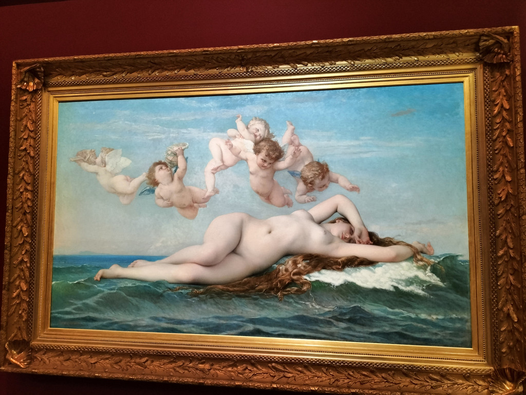 这个是《维纳斯的诞生》,它不如波提切利的《维纳斯的诞生》出名,作者也不出名。讲解说现在知名的大师在当时反而不出名。据说维纳斯是是宙斯的sheng zhi qi,掉落大海变成了女神,维纳斯是罗马神话的爱神,也就是希腊神话中的阿芙洛狄忒,小爱神丘比特的母亲。