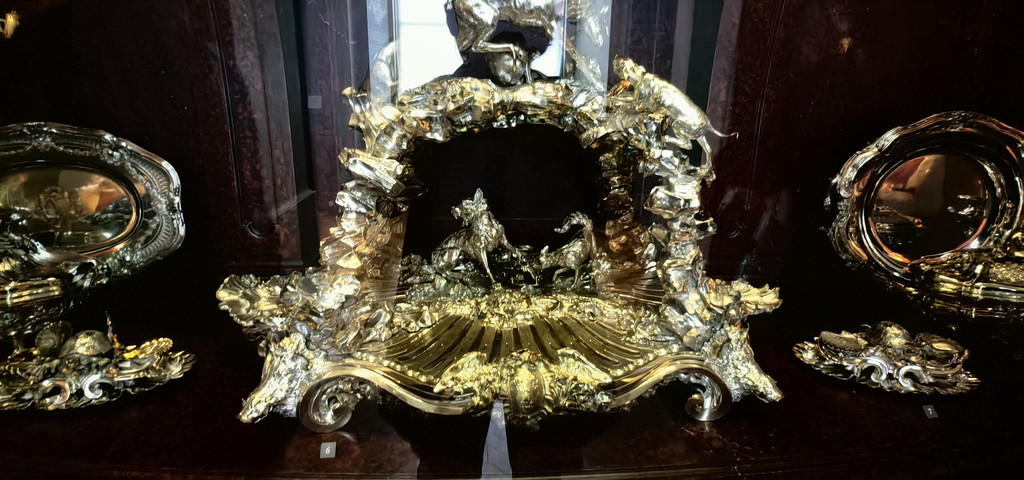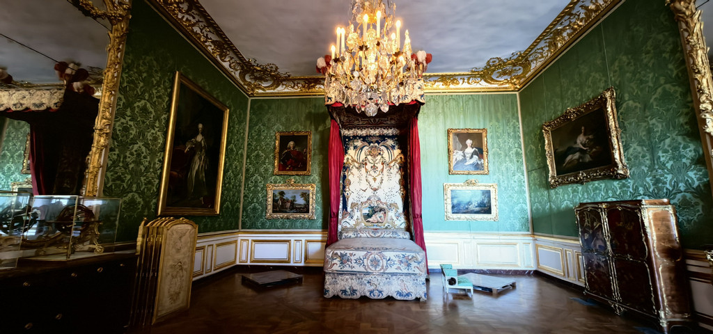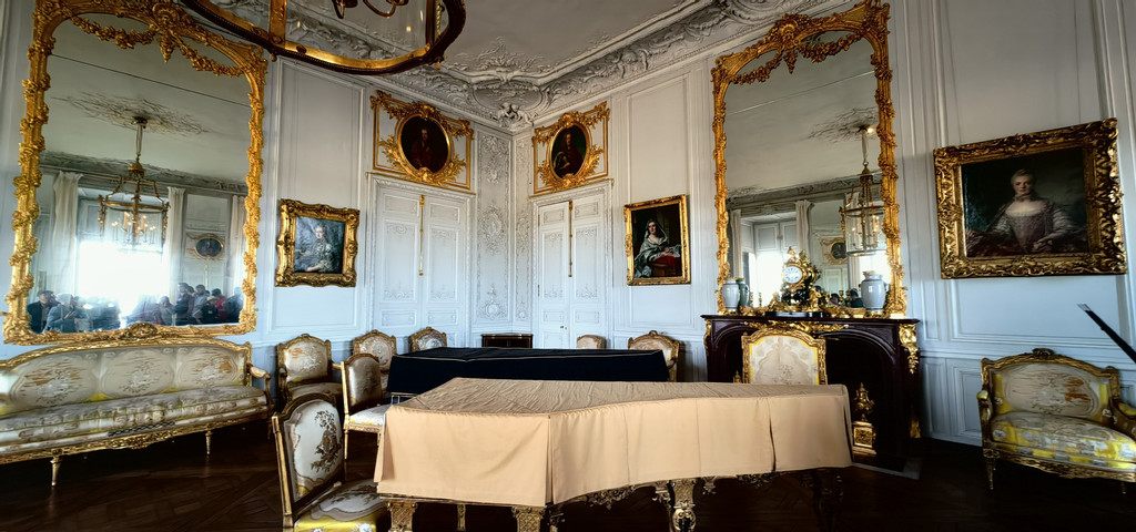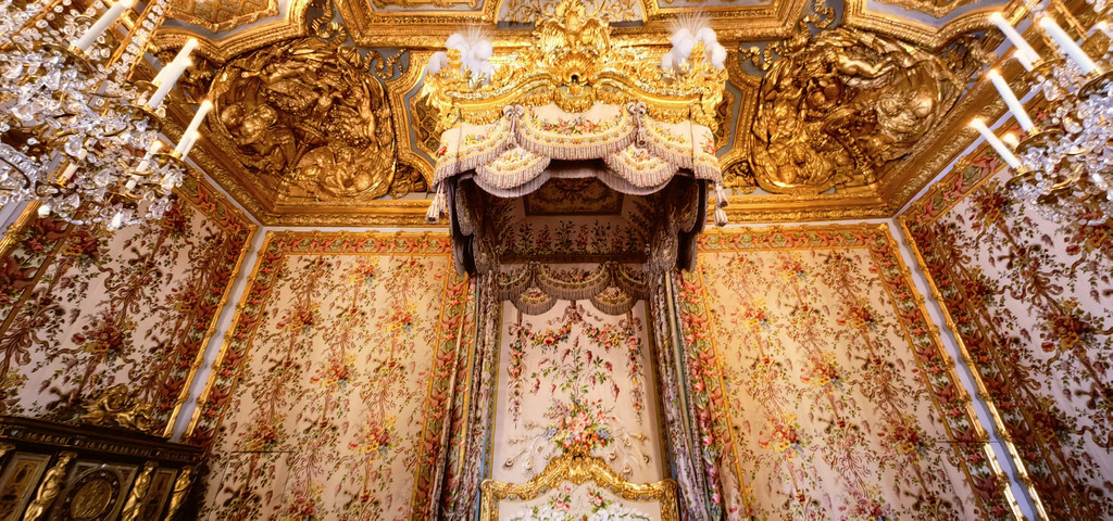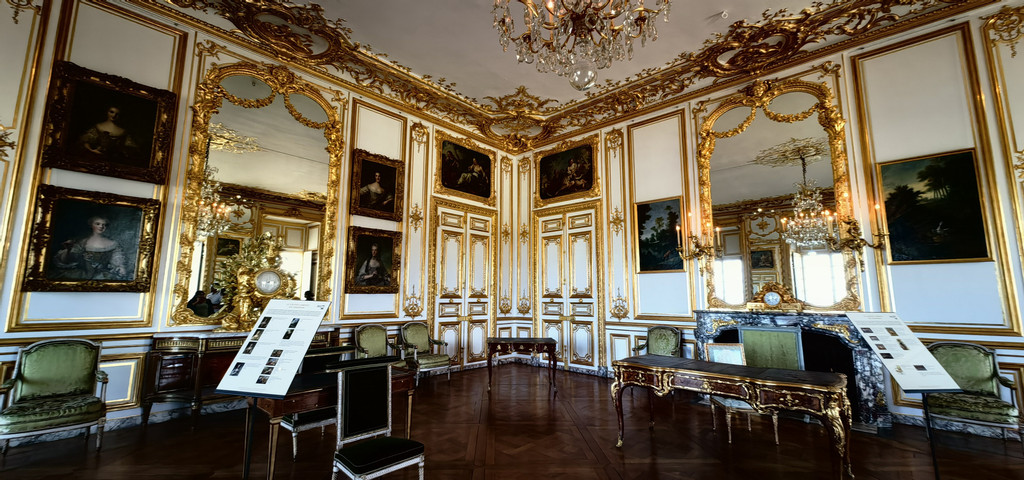 几乎每个房间的装修,地面,墙面,甚至顶面,都有复杂又细致的装饰,顶面一般是壁画和石膏线条,墙面主要是石膏和护墙板,然后金子涂在表面。卫生间还有一些从中国学习到的瓷器,学习中国的技术塑造出欧式风格的装饰品。