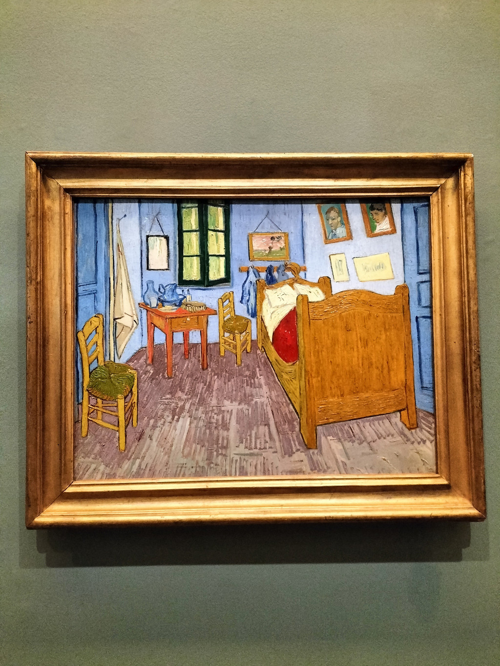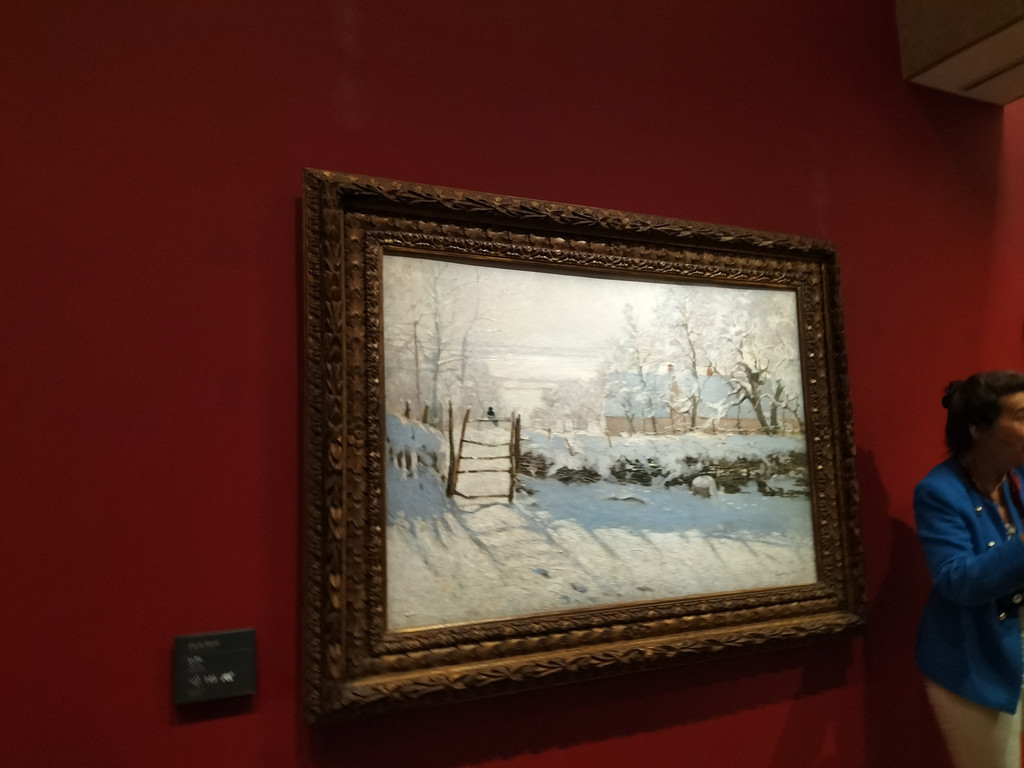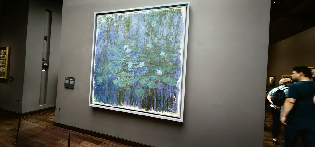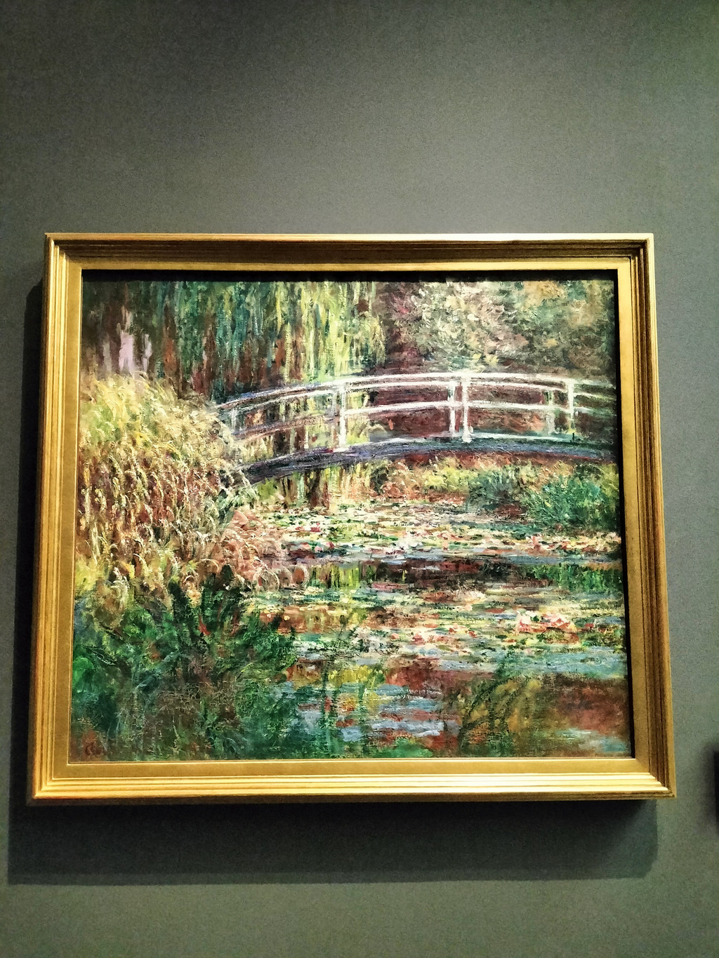 之前久闻莫奈开创了印象派绘画,曾经看图片总是无法理解印象派的美妙,看到真迹才真正感受到其厉害之处。我认为印象派最大的特点就是凑近看,像是乱花的斑点,远观才能看到画之所物,它是利用人眼有汇聚理解事物的能力,所以当我们看作品时,不仅画家创作了这个作品,人眼也参与了创作,这个真的要看真迹才能感受到。不得不佩服莫奈真是太厉害了。此外,印象派强调的光影,莫奈对光影的表达非常真实。在莫奈之前很多人画影子都是黑色,但莫奈发现有时候影子不一定是黑色,他选用了淡蓝色来表现影子,十分真实。莫奈也深深影响了梵高。