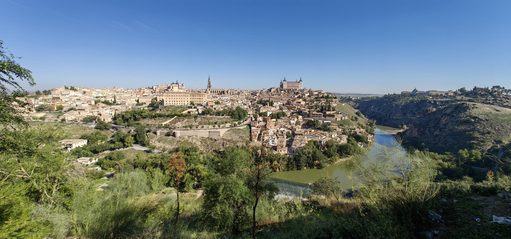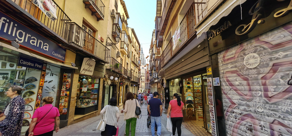 远处的山上看托莱多古城,被河流包围,古人也是会选地方。进城之后,都是古朴的街道和楼房。房子多是砖石材质,地面都是石头,难怪可以保存上千年之久。而我国的建筑多以木结构为主,时常因改朝换代,宫殿就被烧毁了,真是可惜。