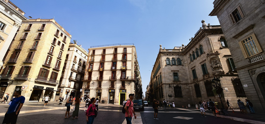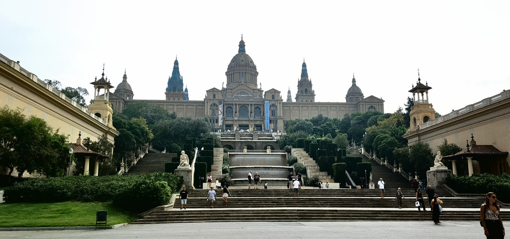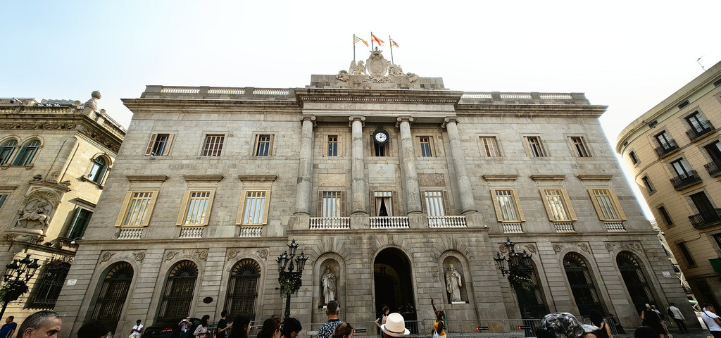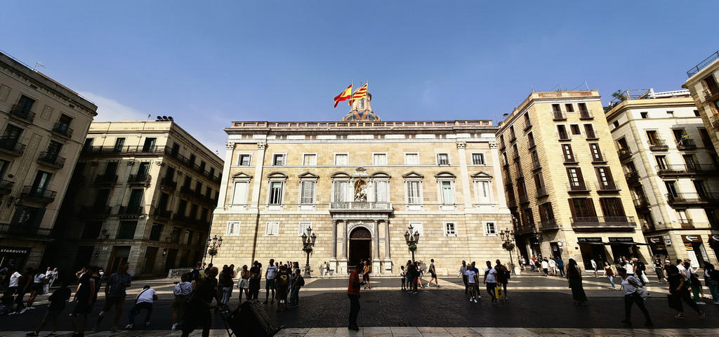 听说巴塞罗那由于比较富裕,所以曾经有很多人搞独立,这个建筑上的旗子就是他们自己给巴塞罗那设计的旗子。