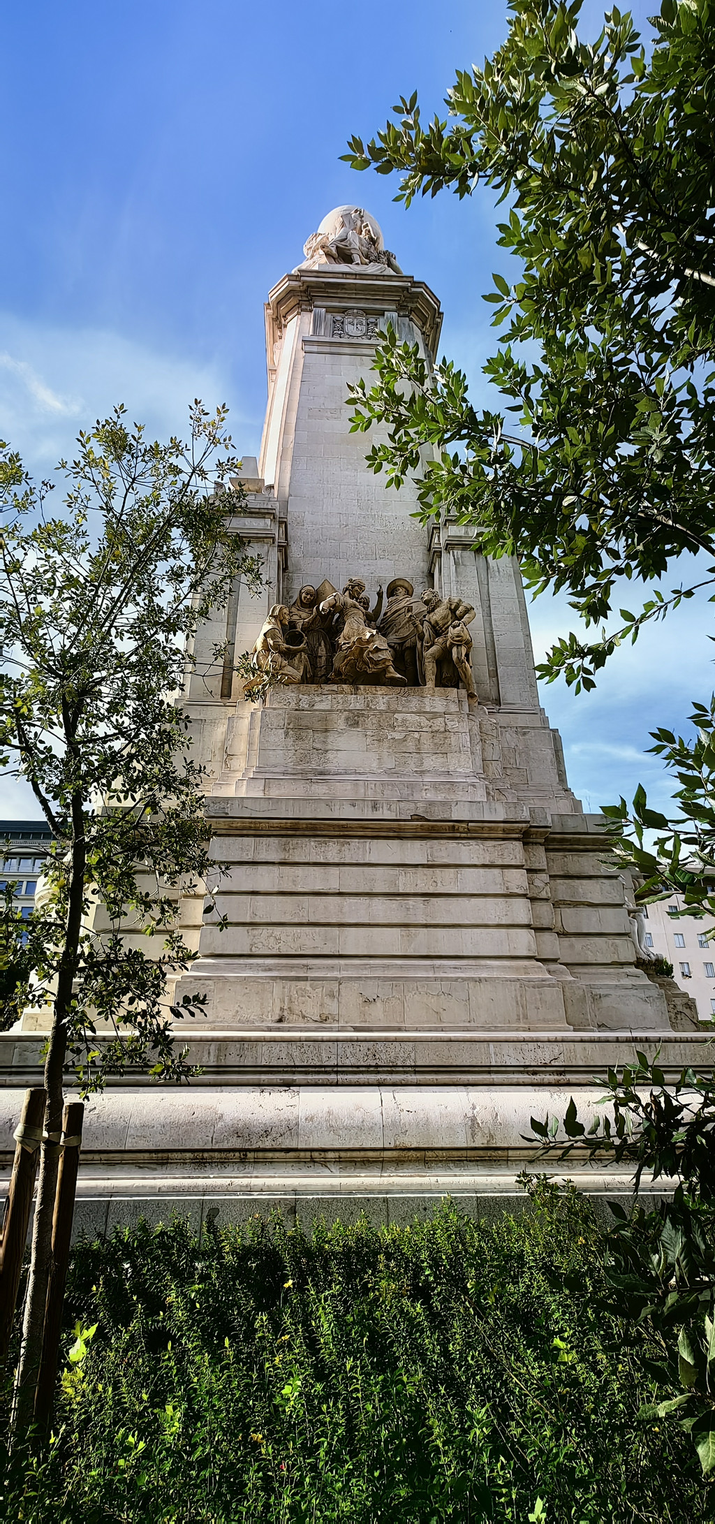西班牙是广场位于马德里市中心,这里有很多游客和当地的居民在此游玩休闲。在这里最著名的就是塞万提斯和他笔下吉诃德先生与桑丘的雕像。我也是来西班牙才知道,堂诘诃德其实并不叫堂吉诃德,西班牙与的don是一种尊称,诘诃德才是他的名字,所以正确翻译是诘诃德大人/先生。