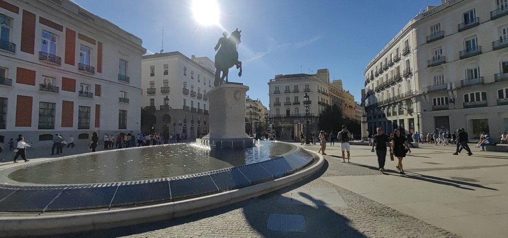 广场这里还有个0起点标志,西班牙全国所有的公路里程碑都从这里开始向外计算,马德里市的门牌号也是以这里为起点的。
