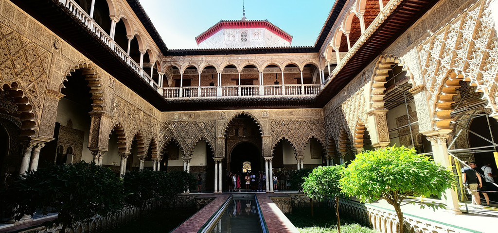 整个王国建筑融合了西班牙传统王室建筑风格和巴洛克建筑风格内部装修主要是意大利风格,一走进去,金碧辉煌的宫殿十分惊艳震撼。可惜内部其他地方不允许拍照。