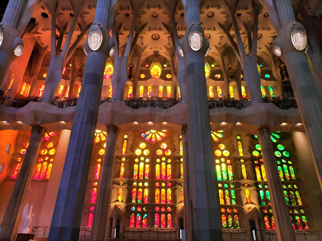 高迪还是那么会运用光线,不同颜色的光是根据太阳照射教堂的方位不同