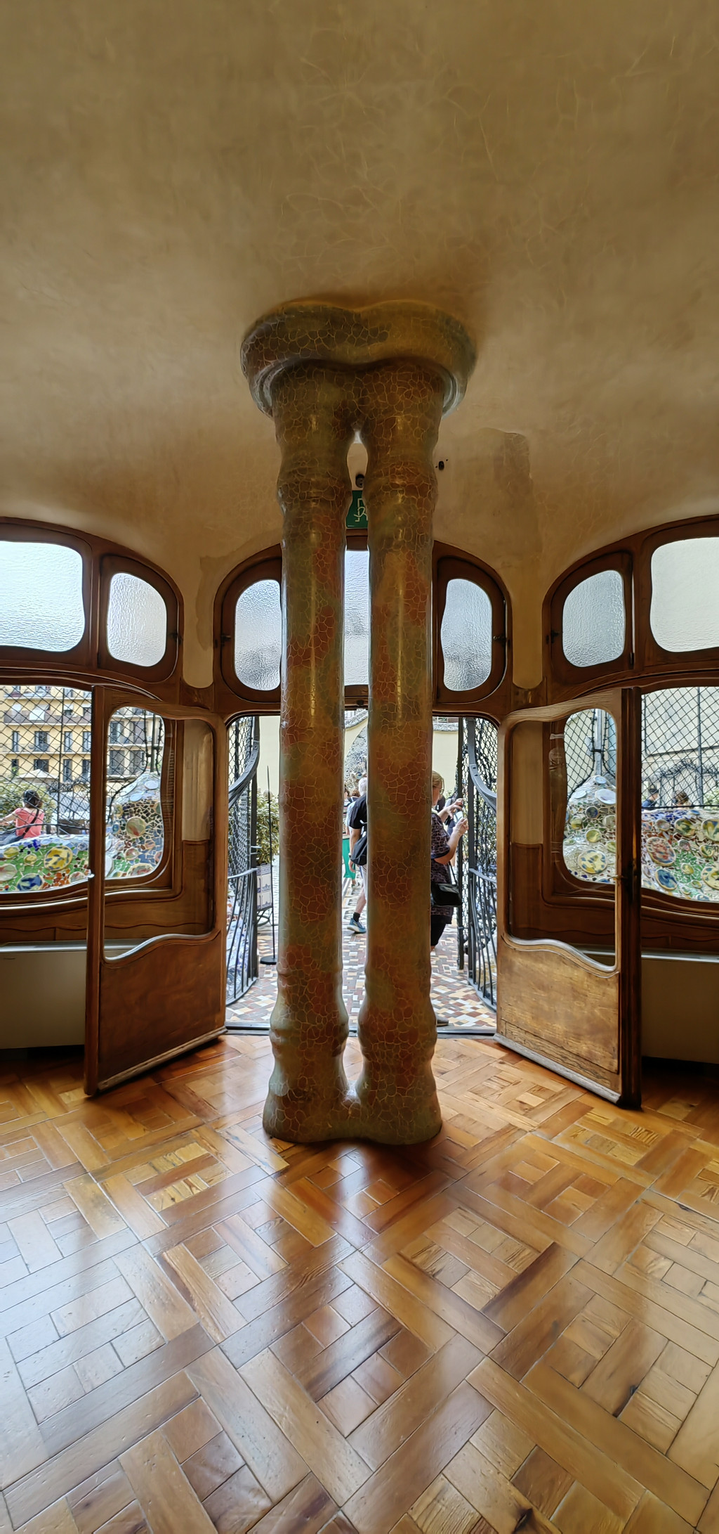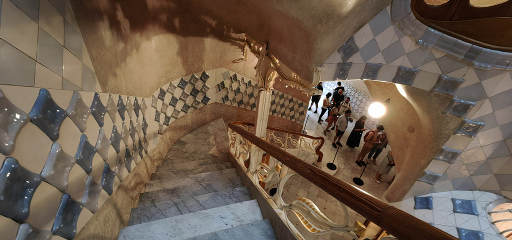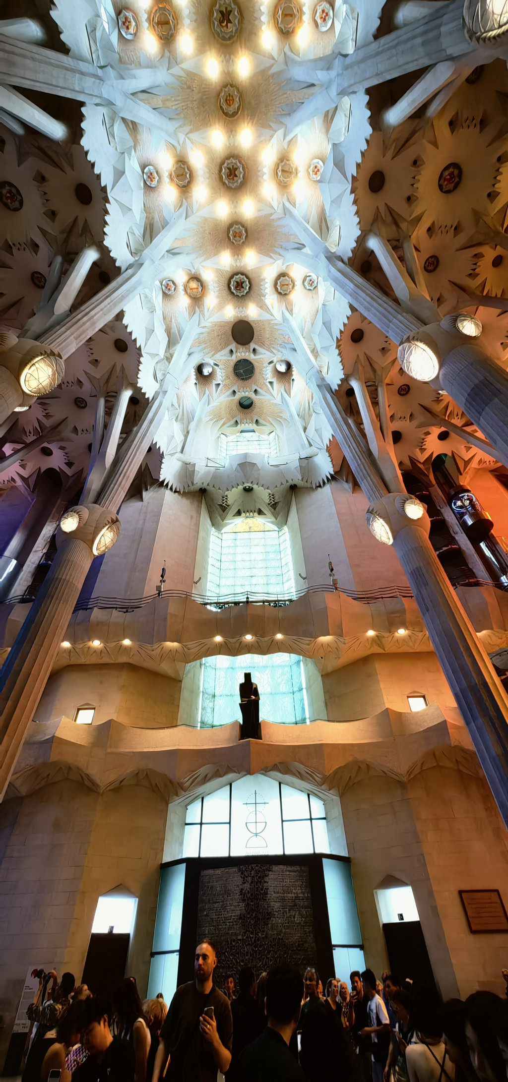 从外入内,仿佛走进树林,顶部像森林一样的设计,高迪还是那样充满想象力,能感受到每一个作品都有故事,都有生命。