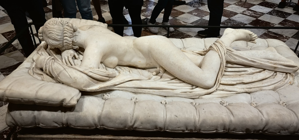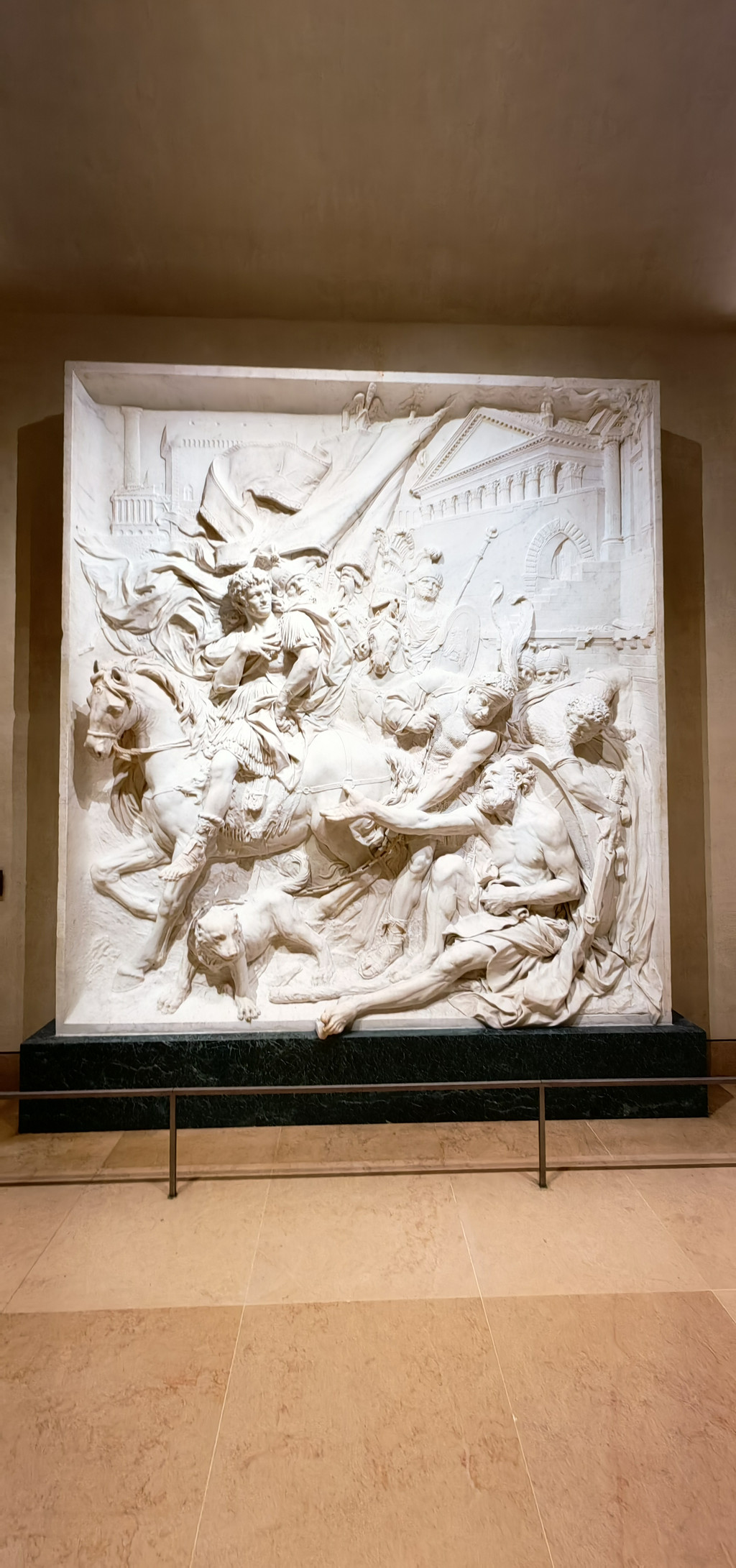 我们先去了人少的展厅,这个作品是亚历山大见到哲学家狄奥根尼,亚历山大问他是否需要帮助,狄奥根尼说:你别挡住我的太阳了,亚历山大非常吃惊,立即让开,展现了大帝的君子之风。同时这个作品的出现也是以古说今,代表当时的国王也是这样。