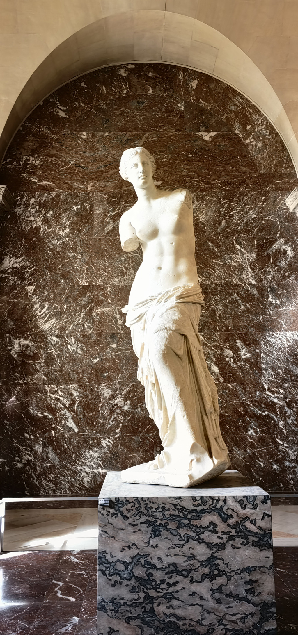 阿历山德罗斯的《断臂的维纳斯》,也是古希腊的大理石雕塑。这个曾被一个农发发现,法国人收买农夫,挖走了雕像,后来土耳其人奋力争夺,混战中,手臂被摔断,于是成了现在这样。说起来,其实卢浮宫里有很多都是法国抢来的物品,不过有些文物,一些小地方不会保存挖掘和研究,法国抢来也还是妥善保存了。不管怎么样,都是前人智慧的成果,不管是谁,应该珍惜保护它。