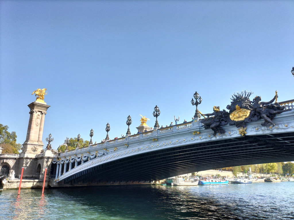 这是亚历山大三世桥,是以俄国沙皇亚历山大三世名字命名的,巧连接香榭丽舍大道和荣军院广场(拿破仑墓),法俄友好的象征。