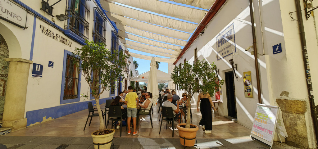 科尔多瓦的街道,这里的街景,建筑,可能是受穆斯林的影响,白墙为主,黄色装饰,圆弧造型,真有种穆斯林风情。