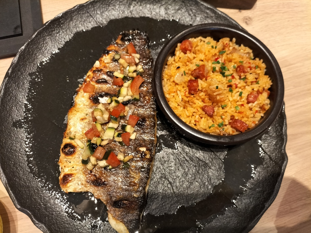 马德里中午吃的西餐。这个鱼超级肥,感觉吃一口全是油。