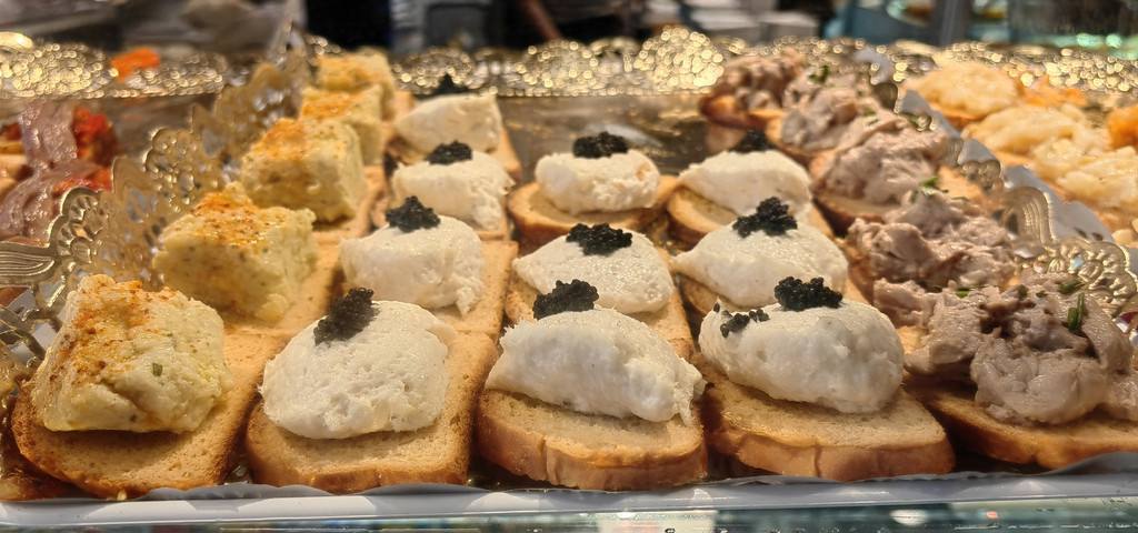 我们在这里品尝了塔帕斯,就是面包上加一些东西,口味非常多。