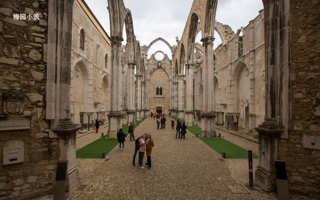 卡尔莫修道院是佩雷拉元帅于1389年创建的,其目的是让来自莫拉的加尔默罗会修士在此安身。在1755年里斯本大地震中成为了废墟。里斯本市政府刻意让修道院保持废墟状态,作为大地震灾情惨重的历史见证。在大地震后修道院只剩下大门,部分外墙、大型立柱和天顶肋拱。如今的卡尔莫修道院天空成为了它的穹顶,断残的石柱在夕阳下站立,当抬头仰望时没有其他教堂的庄严与凝重,有的是苍凉和哀伤,就如葡萄牙曾经一去不返的辉煌