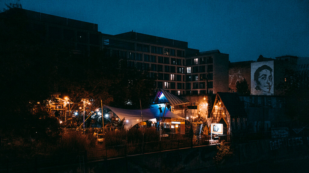 桥旁边有个露天夜店,后来一查才知道还挺出名。