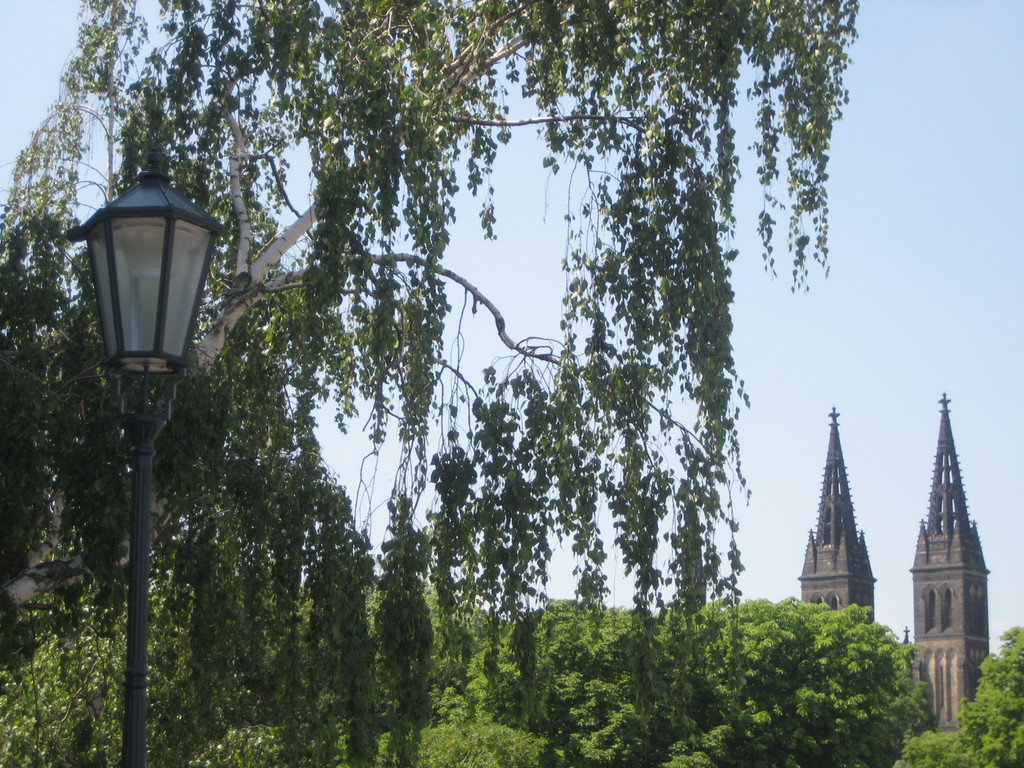 第二天,太陽先生不打算休息,我們乘著電車,穿過伏爾塔瓦河來到高堡區,在這個幽靜與質樸的丘陵上,悠悠蕩蕩了一段美好時光。在高堡區的丘陵邊緣可以一覧伏爾塔瓦河兩岸風光。遠處的森林跟閃著粼光的河面,別具風情。在高堡區內無論走到那一角,都可看見兩座哥德式尖塔高聳入雲,那就是聖彼得和聖保羅教堂了。