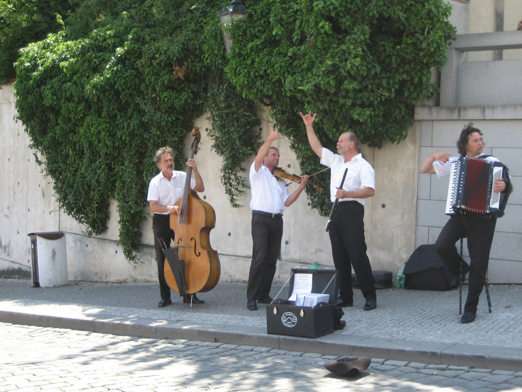 從城堡區走出來,城堡大門是小廣場,有著一切旅遊景點的元素;有人悠閒地躺著、臥著、坐著;有在餵白鴿;有三五成群的拍照景、互相追逐;還有街頭樂隊…尤其是樂隊表演,在這裏絶不罕見。