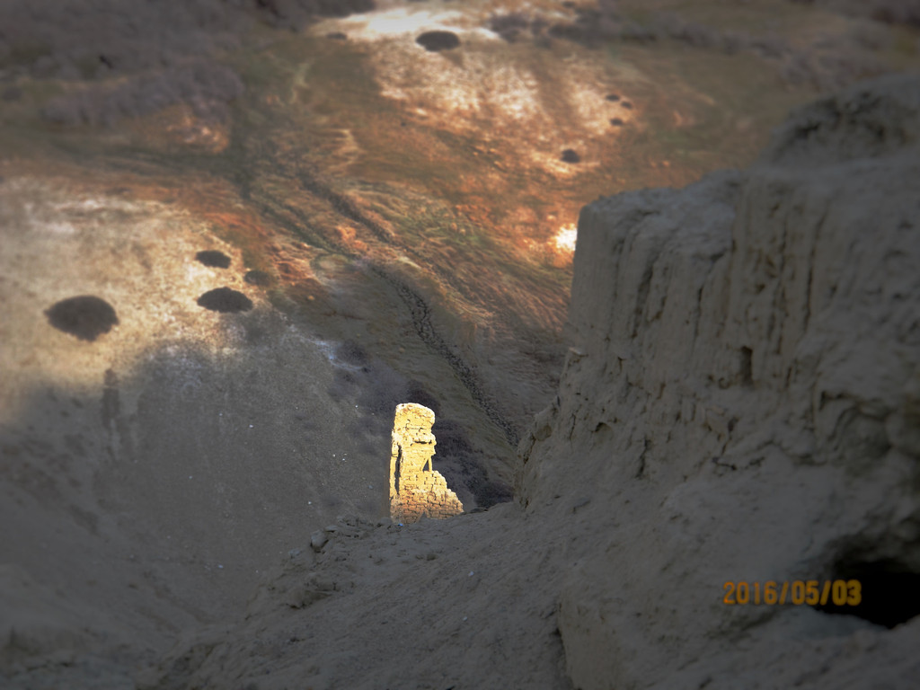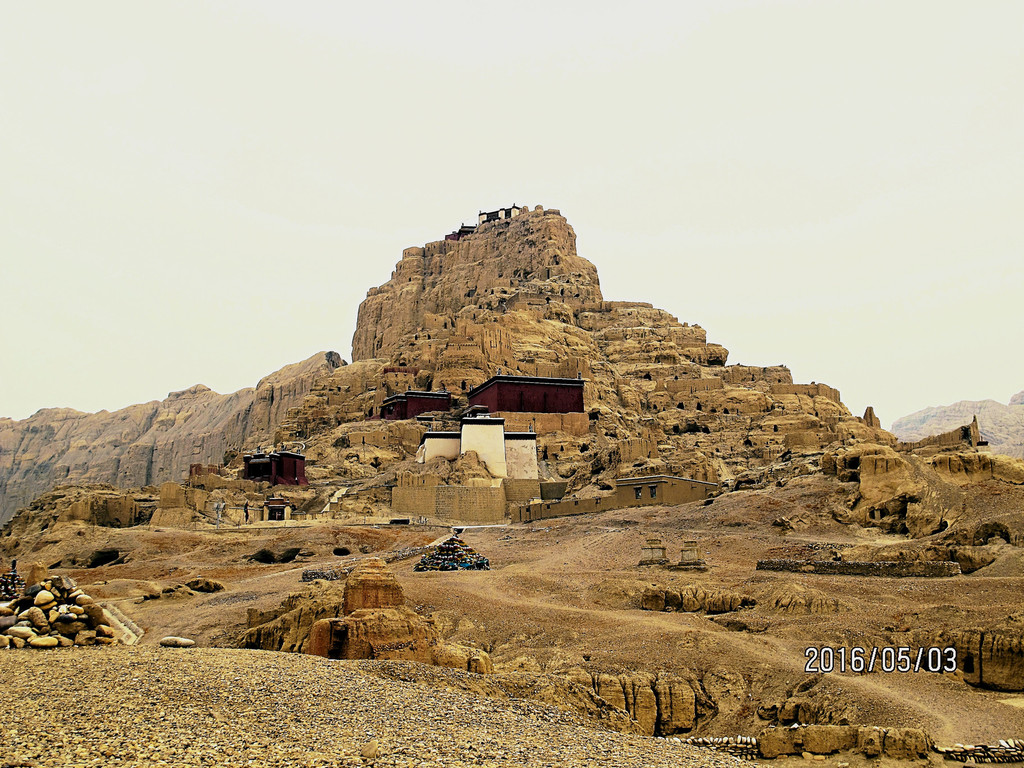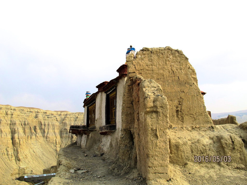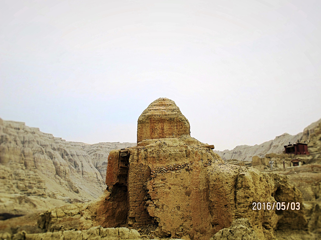 王城根下,通往干尸洞的路上,有一个姑且称作小建筑物的遗址,看见它的第一眼,不用思考,就知道那是冈仁波齐——看来微缩景观的历史至少可追溯到一千年前的西域高原。由此也可见神山的历史地位。正是这座“西迁”至王城下的冈仁波齐,守护着古格王朝延续了700年;也正是它欲与王城试比高的气势,导致古格王朝仅存在了700年。这惟妙惟肖的仿制冈仁波齐,与坚硬而倔强的古格遗址一样,虽历经岁月的沧桑,风雨的侵蚀,如今依然孤独而顽强地矗立着,似乎向后人传递着探究传奇古格的密码。