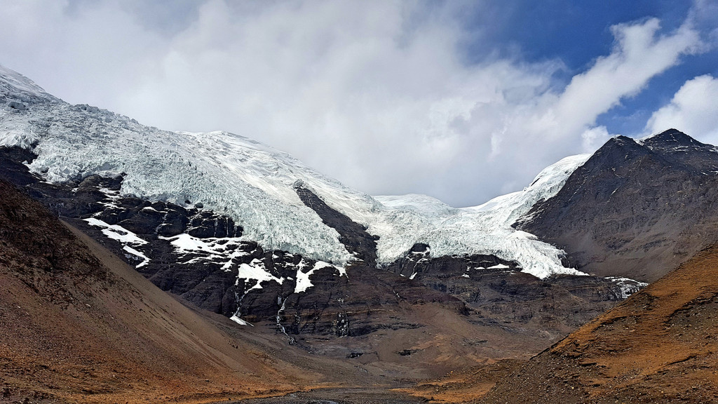 卡若拉冰山,离公路最近的一座冰山,停车下去走几百米,就可以触摸倾泻而下的冰舌。由于离公路太近,冰舌已退回到半山腰,本来洁白如云的冰雪,现已浸染了人间凡尘。