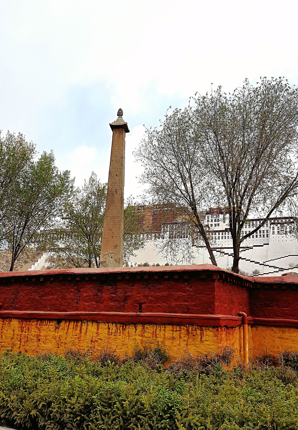 布宫对面的广场前,孤独而又醒目地竖着一座让人侧目又不明就里的方柱形纪念碑,查了一下资料,它叫恩兰达札路恭纪功碑,也称外碑,屹立布宮对面,像一把利剑,默默守护布宮一千多年。这座碑之所以不被提及,估计跟汉藏关系有关,当年就是这个恩兰达札路恭率军打入长安,逼走了唐代宗。