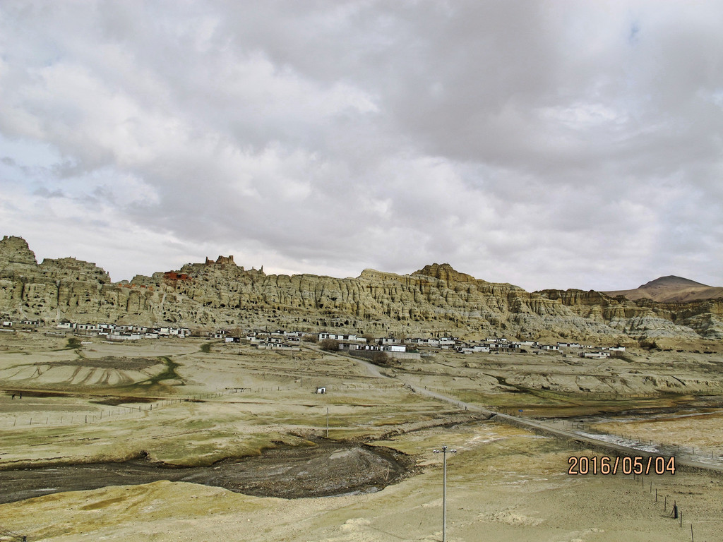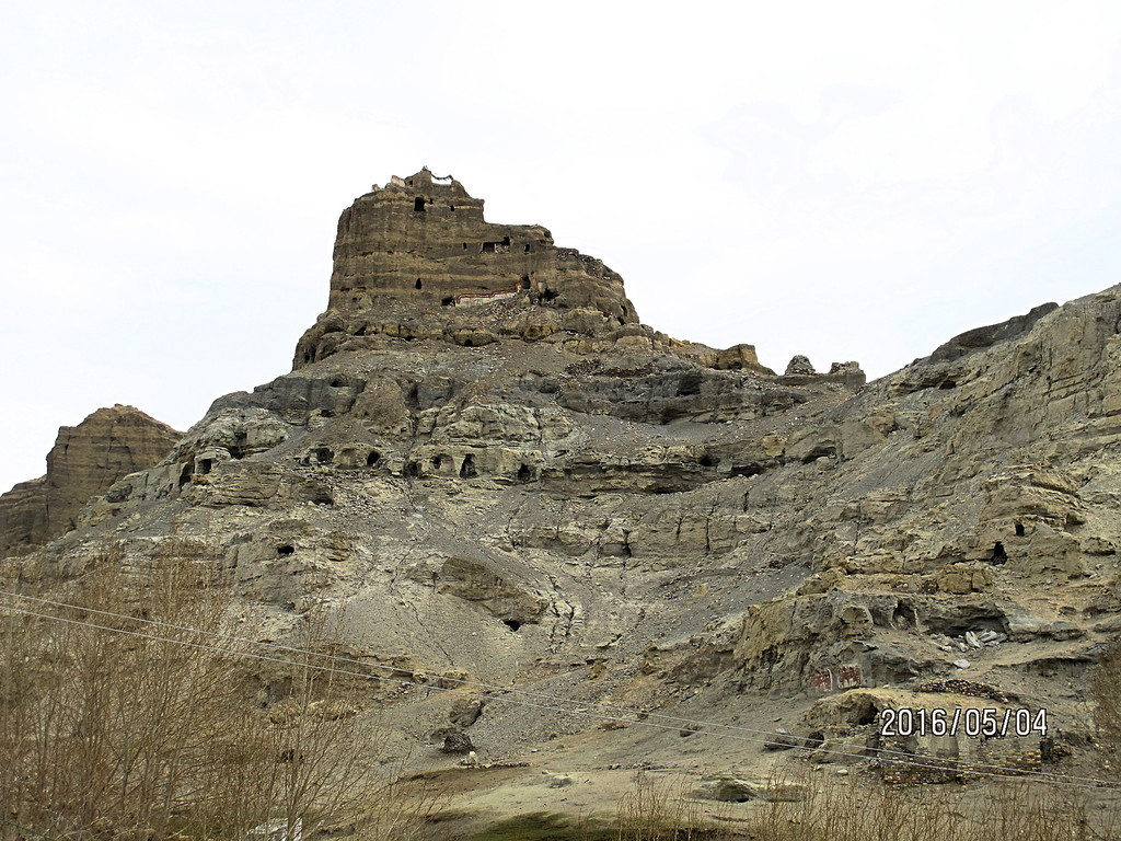 东嘎遗址我们没有特地去寻找,村口的村民直接就把我们指引到了两公里以外的皮央遗址。就在村口的另一面,我们转身一望,似乎又看见了扎布让古格王宫遗址。洞穴、碉楼,集寺庙与王宫于一体的一座依山遗址拦截了我们的目光。虽然残破、坍塌,但布局气势不凡,估计不是古格王的行宫,就是哪个亲王的王宫,或者王妃的后宫。应该不是传说中的扎西曲林寺吧?