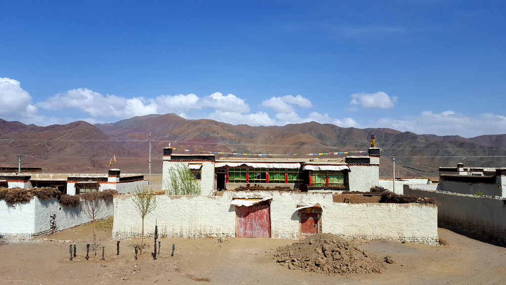 公路边偶尔出现的藏民屋居,村名路牌,提示着初次进藏的人们,这里并不是想象中那么遥远,荒芜。