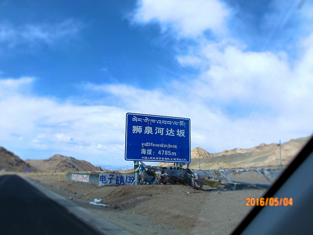 出拉萨不远,我们就爬山了。汽车在山上绕来绕去,就像一只蚂蚁在一块硕大的岩石上跑来跑去。岗巴拉山口,此次离开拉萨西行的第一个山口。这个山口也是一个驿站,吃的喝的都有的卖,最大的特色就是跟藏獒拍照。十几头藏獒被铁链拴在一个个水泥石墩上,驯服温顺。给主人十块钱,你就可以任选一头随意亲密,任摆pose,拍无数张照片。还好我在这里跟藏獒亲密接触了一回,再后来就再也没见到过藏獒,除了在狮泉河的宾馆后院里,一只家养藏獒跟一只土狗打闹玩耍。这里4280米海拔,我们倒是还都没有太大的高原反应,就是在山坡上跑上跑下拍照还是很累,气喘吁吁。