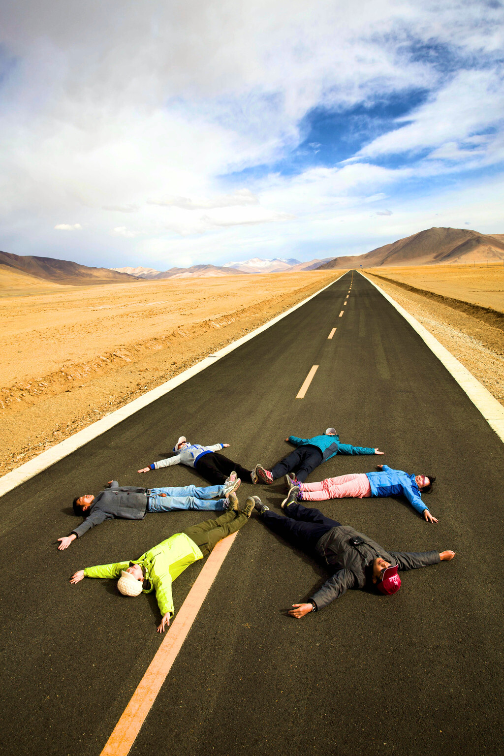 219国道,本身就是阿里的一道风景。估计世界上没有几条公路可以让人停车驻足,而且是一次又一次,以公路为背景,以远处的雪山、湖措为背景,躺着、坐着、跳着、行走着,各种pose创作着,记录下阿里的自己,不一样的自己。