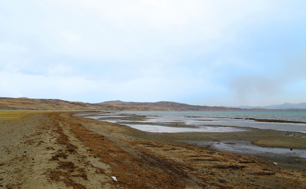 紧挨在玛旁雍错西面的就是拉昂错,两湖被一条低矮的小山梁隔开,正好通向普兰的公路也修在了这条小山梁上。行驶在两湖之间,就像漫步苏堤之上。不同的是,苏堤的两边都是西湖,而这里的两边是天地之别,左边是圣湖,淡水,右边是鬼湖,咸水。不过,我们这趟眼中的拉昂错美过玛旁雍错。