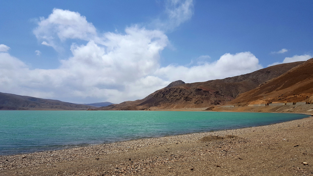 满拉水库,就像羊卓雍错的姊妹湖,一个幽蓝,一个碧绿,一点儿也看不出人工的迹象。就像这里的城堡、寺院,依山而建,自然和文明融为一体。