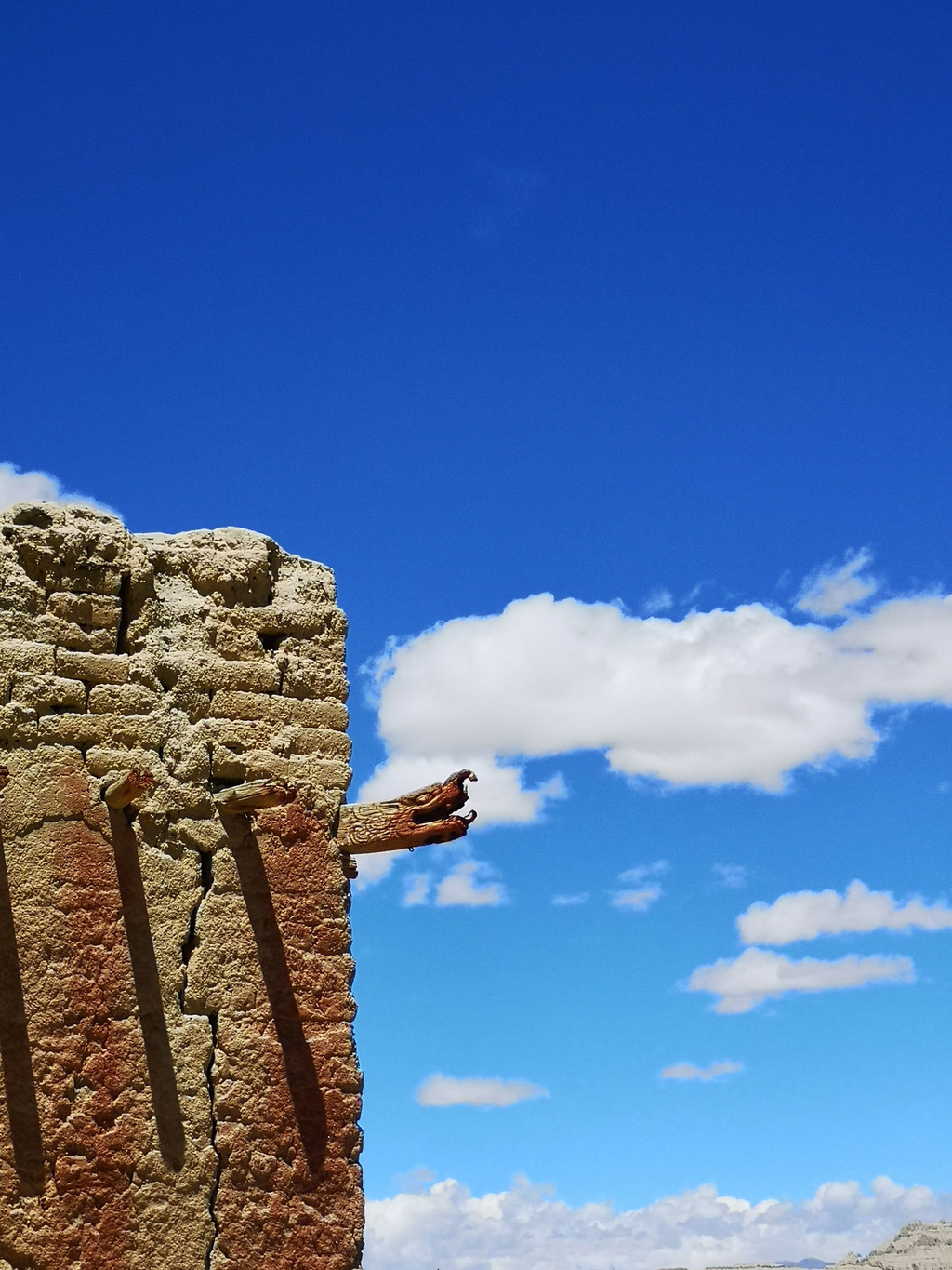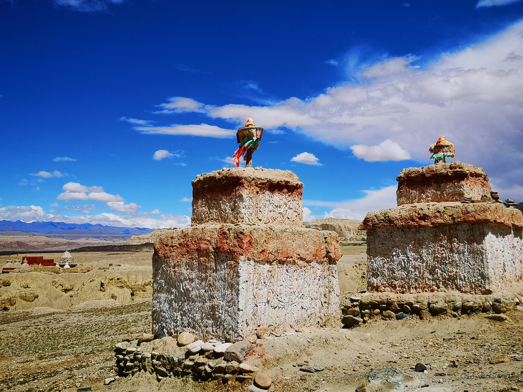 上午退房后,又进塔钦镇子里兜了一圈,算是告别。往札达的路上,向路右看去,很长一段时间可以望见冈仁波齐。途中又去了古入江寺,路况很好,该寺是阿里地区现存唯一的苯教寺院了,有一部分修建在山上。之后返回219国道,找了家茶馆喝甜茶,稍事休息继续前行。