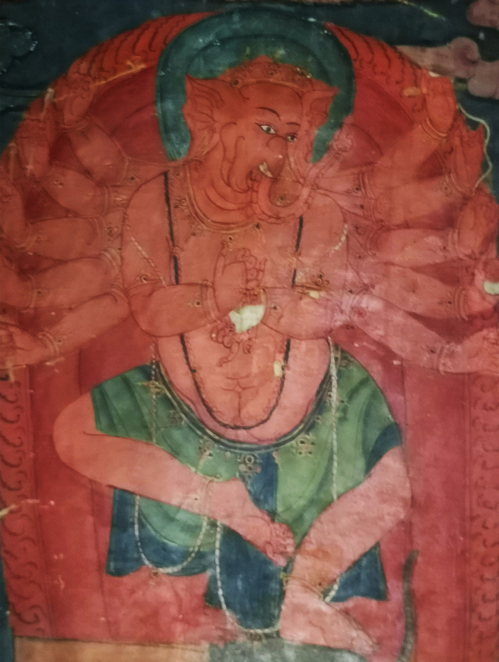 原路返回701县道,再向北开不远就该向右拐了,路牌指引去往东嘎皮央遗址,那是另一处古格王国的遗址,只是比古格王国的游人少。山下的一间茶馆买了票,每位50元,娃又免了票。这次很幸运,看管壁画的大爷带我们进洞观赏了壁画,身上没有合适的礼物,只好给这大爷留了盒“南京十二钗”聊表心意了。下山后,在买票的茶馆喝了会儿甜茶,遇到了位藏族司机大哥,专门跑旅行包车的,闲聊间给我们介绍了比如的骷髅墙和萨普冰川,于是我们就此调整了线路规划,准备后程去看看。