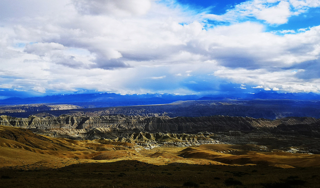 历经了”十里四季“变化,翻越山口时像是刚刚下过雪,还没有融化。渐渐地,已经可以陆续看到土林地貌了。我们跨过象泉河(又名:朗钦藏布),进入了夕阳照耀下的札达县城……