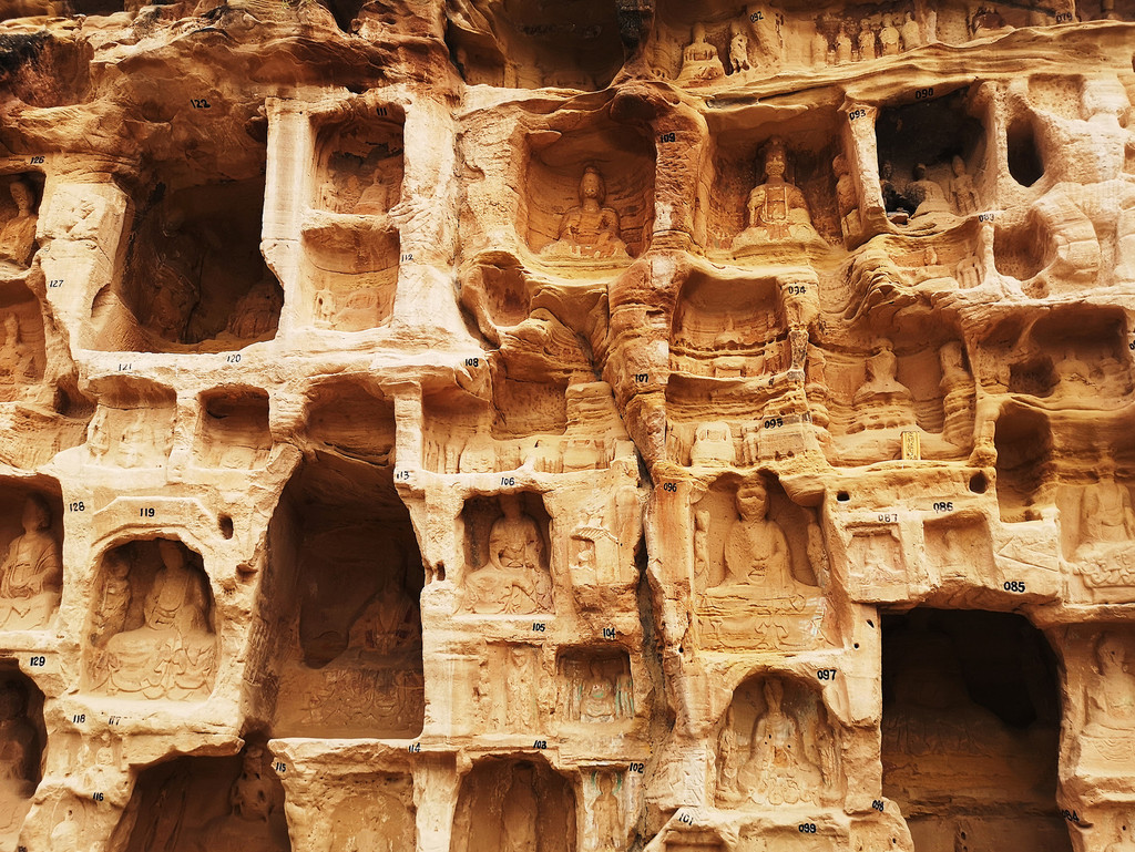 在庆阳要住三晚,等待K公从中卫赶回。除了闲逛外,吃了自助午餐“面肚子”,还去了城外不远的北石窟寺,其历史最早可以追溯到北魏时期,正在修缮中,只能看几个洞窟。其中165窟最为代表性,是北魏时开凿的,本不让拍照的,舍不得错过,偷偷拍了几张。