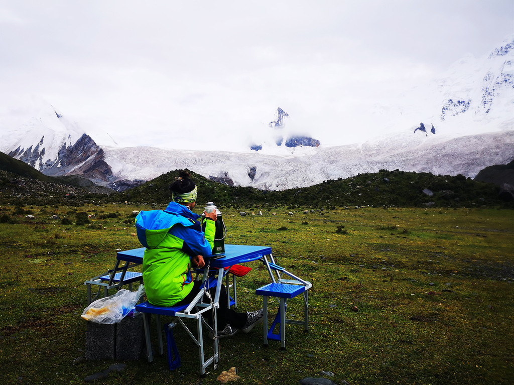 由于南京机场的疫情爆发,进入保护区大门时,安全防疫检查严格了许多,折腾了二十多分钟才得以进入。经过108拐后,抵达环保车换乘站。抵达大本营【5000米】后,天气时云时雨,一行人等躲进一顶帐篷,点了一暖瓶甜茶静等,结果始终没能看到珠峰的山尖,旁边的绒布寺也懒得去了——藏区最不缺的就是寺庙了。