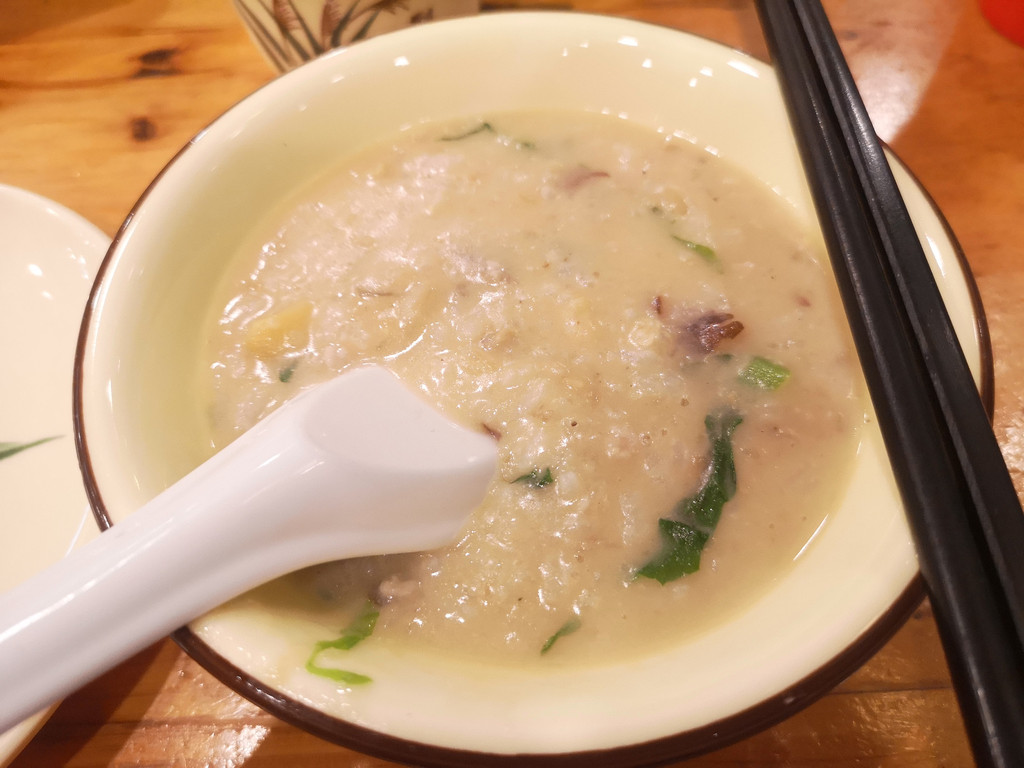 穿越秦岭隧道后,在汉中的良心隧道遭遇大货车侧翻,堵了五个多小时,又赶上下雨,我们还好堵在隧道里,K公他们堵在隧道外,下不了车、又不能开大车窗。午夜时分才到达广元,放下行李赶紧宵夜去,广元春秋国际酒店(168元/晚)前台热情的胖丫头推荐我们去了叫“让鸭脑壳飞”的餐厅,皮蛋瘦肉粥做的独具特色,跟广式早茶做的不同,但味道很好、料很足。